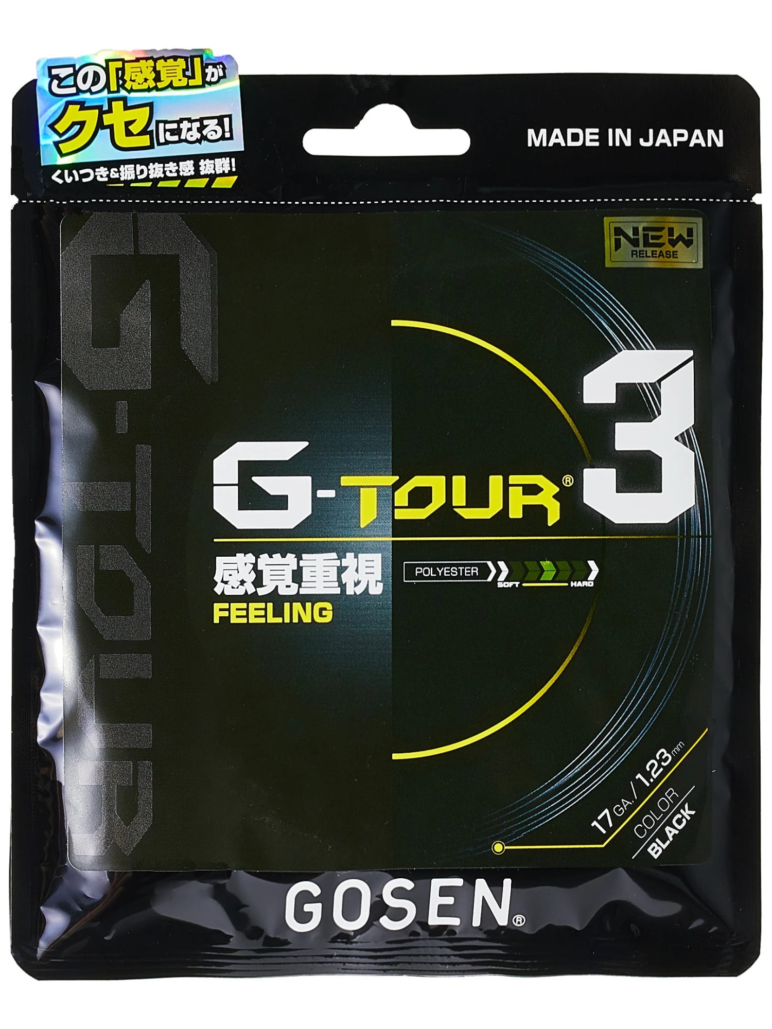Following on the heels of G Tour 1, Gosen releases one of the more comfortable co-polys on the market. It’s called G Tour 3 and it is ideal for the player who wants a comfortable control string. With it’s low-powered response, G Tour 3 will enable you to take massive cuts at the ball when going for more power and spin.