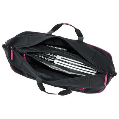 Coco Gauff doesn’t ever settle for the ordinary and that is reflected in the new, bold and unconventional Coco Duffle Bag, which she inspired and co-designed, something she will carry on to the court. Black and vibrant pink, fashioned from a neoprene-inspired fabric, this stylish bag has Coco-inspired details on the webbing tabs, buckles and front zipper puller. The pink logo execution on the straps will also make your style pop, while inside is a tonal "Call me Coco" lining. Colour: Black / Pink There is space for eight rackets, which has a main compartment, and a separate compartment with CCT+ climate control technology that can protect three racquets from extreme temperatures. Along with a separate shoe sack, the bag has a large zipper accessories pocket inside for your personal belongings, as well as one large and one small outside accessories zipper pocket that allows for quick access. You can easily adjust the height of the bag using the buckles on each side. Product Details 100% polyester 73.5 x 34 x 30