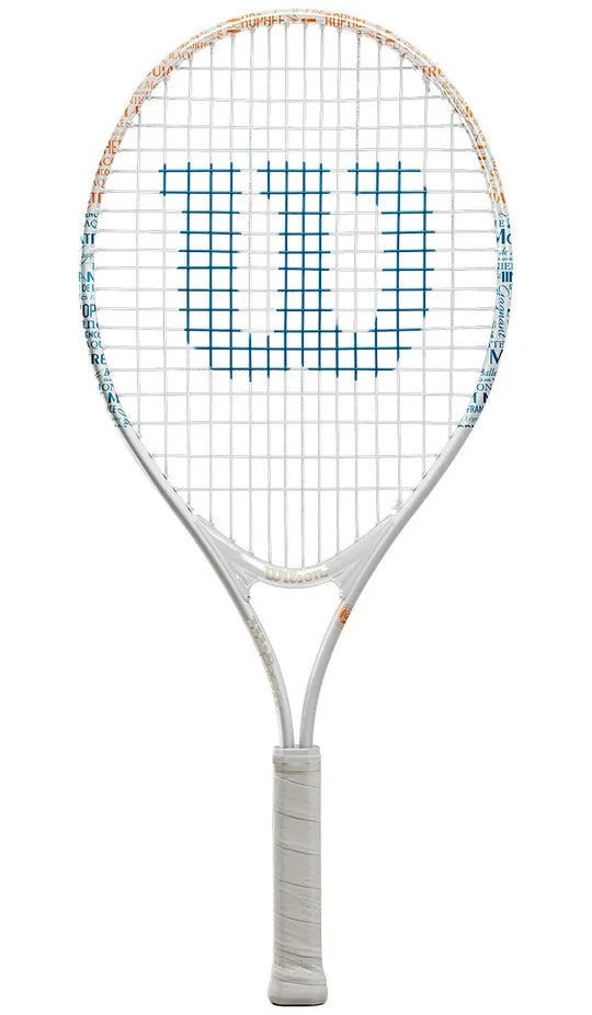 Represent the pinnacle of the clay season with the Wilson Roland Garros Elite 25 Junior Racket. This racket is easy to use and features a sleek cosmetic with Roland Garros branding. A 225 gram weight and 31 cm balance offer easy to swing maneuverability for young players. The forgiving 95 head size and 16×17 string pattern allow players to dig into the string bed for spin and controllable power. We recommend this racket for players age 9-10. Â