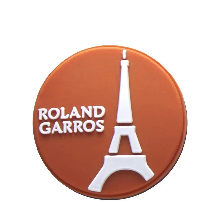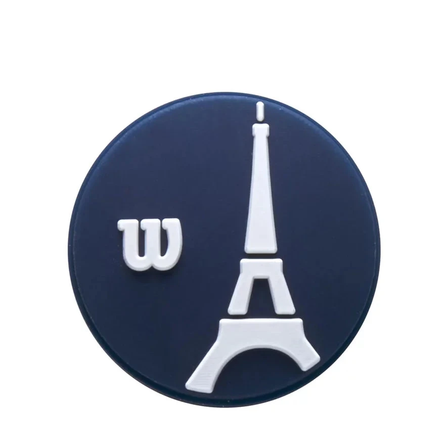Garros inspired anti-vibrators, a pack of Roland Garros inspired anti-vibrators that effectively absorb shock and reduce vibration when balls hit the strings. The pack includes two anti-vibrators with an eiffeil tower graphic. The first orange one is printed Roland Garros while the second, blue, is printed Wilson.